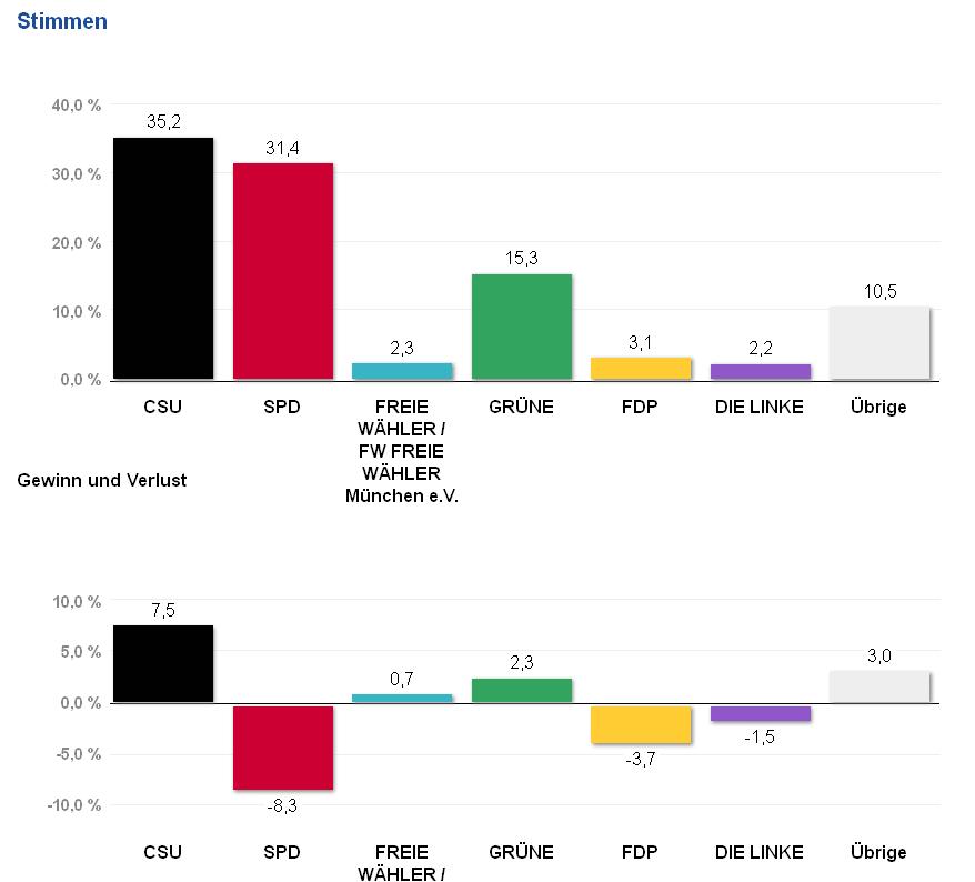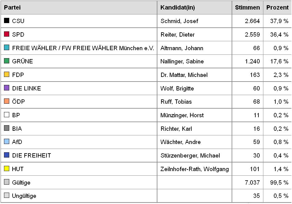 Am Westufer der Isar im Zentrum von München haben sich die Wähler wie folgt entschieden: