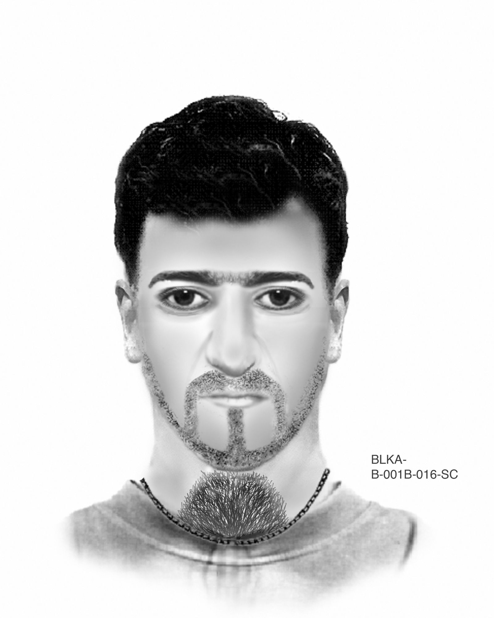 Männlich, ca. 35 Jahre alt, ca. 180 cm groß, schlanke Statur, schwarze lockige kurze Haare, dunkelbraune Augen, Höckernase, schwarzer Kinnbart, nordafrikanisches Aussehen