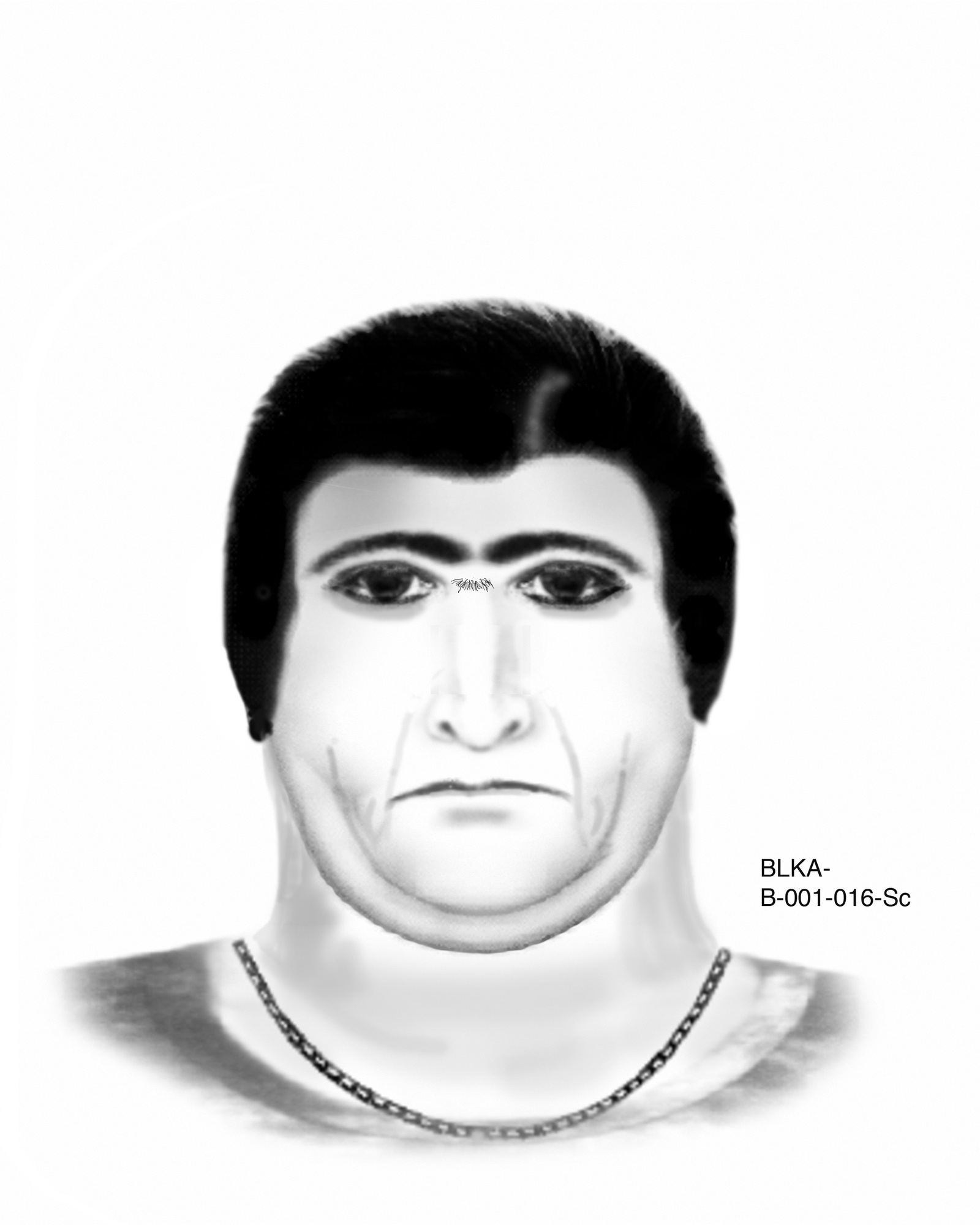 Männlich, Alter unbekannt, ca. 175 cm groß, kräftige Statur mit dicken Bauch, schwarze kurze glatte Haare, schwarze Augen, Höckernase, nordafrikanisches Aussehen;
