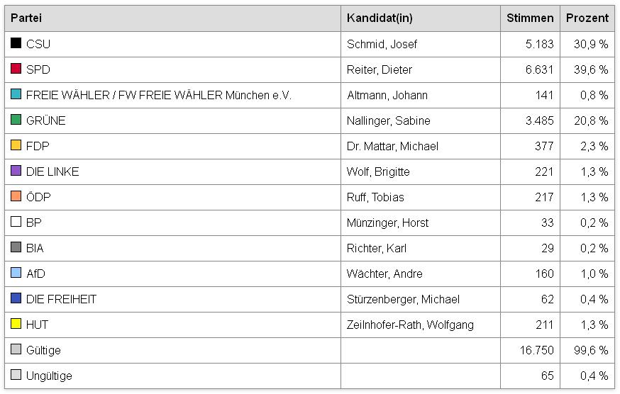 Damit herrscht im Stadtteil im Herzen Münchens eine leichte Tendenz zur SPD, sowohl im Stadtrat, als auch in bezug auf den OB-Kandidaten Dieter Reiter.